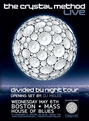 On Wednesday May 6th 2009 I will be opening for the Crystal Method for the 3rd/4th time. This is a very special evening for a few reasons. First, this is the new HOUSE OF BLUES in Boston which I have NEVER played. Yes, as a former resident of Avalon I played that Lansdowne St location numerous times, but this is a whole new building, a whole new room and most importantly a whole new sound system! Second reason, is that this time around the boys from The Crystal Method will be doing a LIVE show!