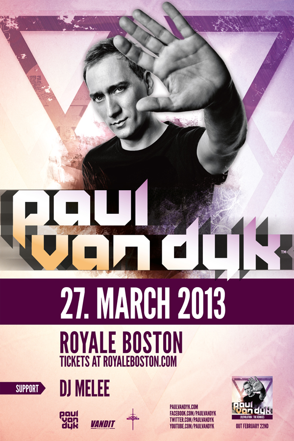 March 27th 2013 | Paul Van Dyk w/ DJ Melee @ Royale Boston TICKET INFORMATION HERE February 22, 2013 Events Comments are closed admin