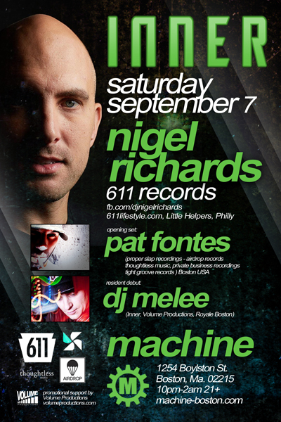 Tags: 611 records airdrop boston connecticut dj melee djmelee inner machine melee new york nigel richard pat fontes providence royale boston sturdy recordings tech funk tech house techfunk techno volume productions
